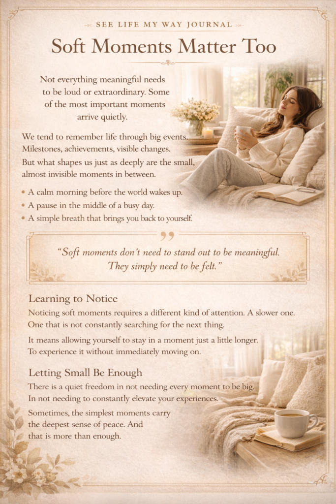 See Life My Way Journal Small Moments Are Where Life Actually Happens Life is not waiting for the big moments. It is quietly unfolding in the ones you almost overlook. There is a common belief that meaningful life is built around big moments. Achievements, milestones, turning points that feel important and visible. And while those…