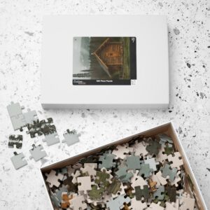A 500-piece puzzle featuring a peaceful cabin in the woods. Perfect for slowing down, relaxing, and reconnecting with the present moment. .: Material: 100% chipboard .: 110, 252, 520 or 1014 piece options .: Available in vertical or horizontal orientation .: Glossy laminated finish