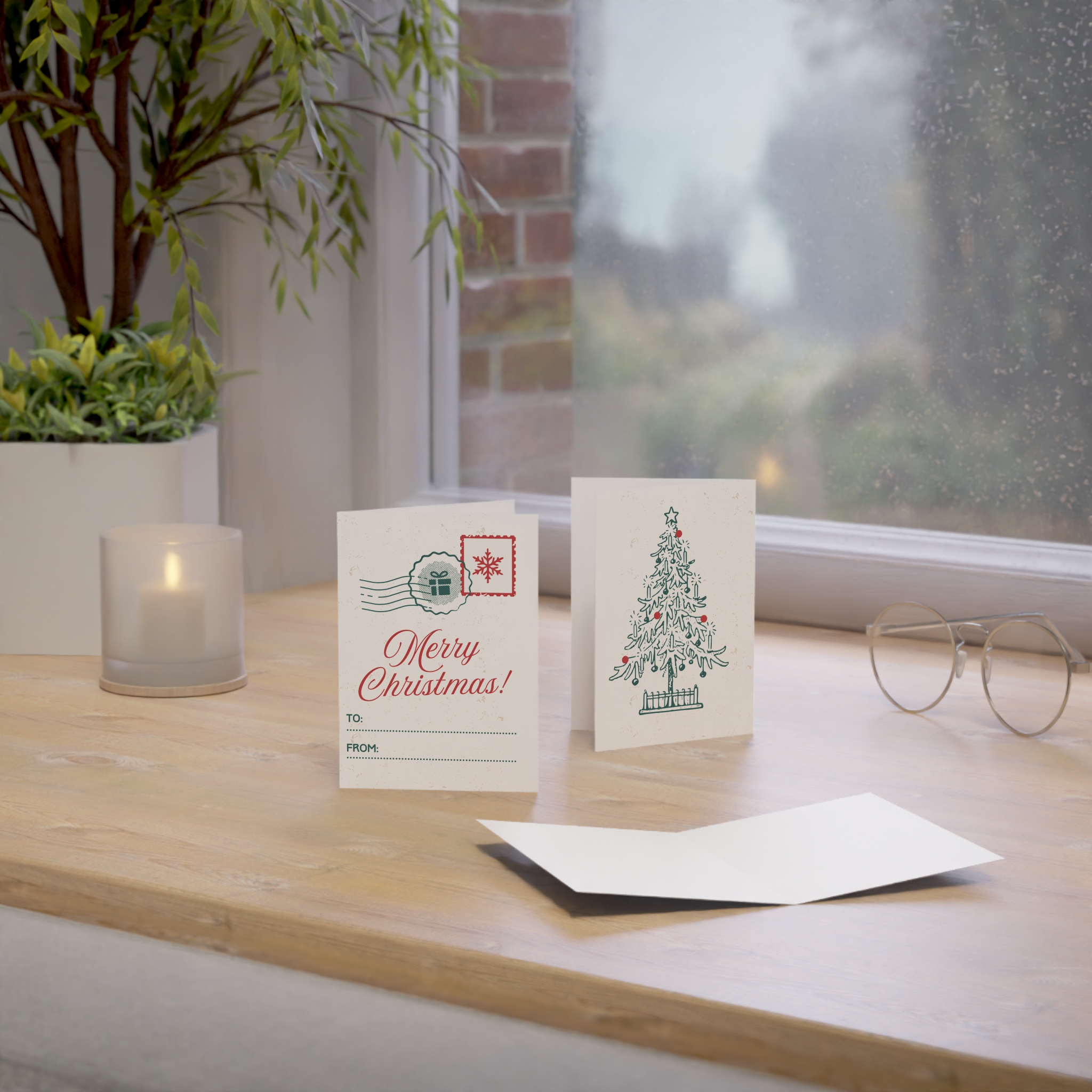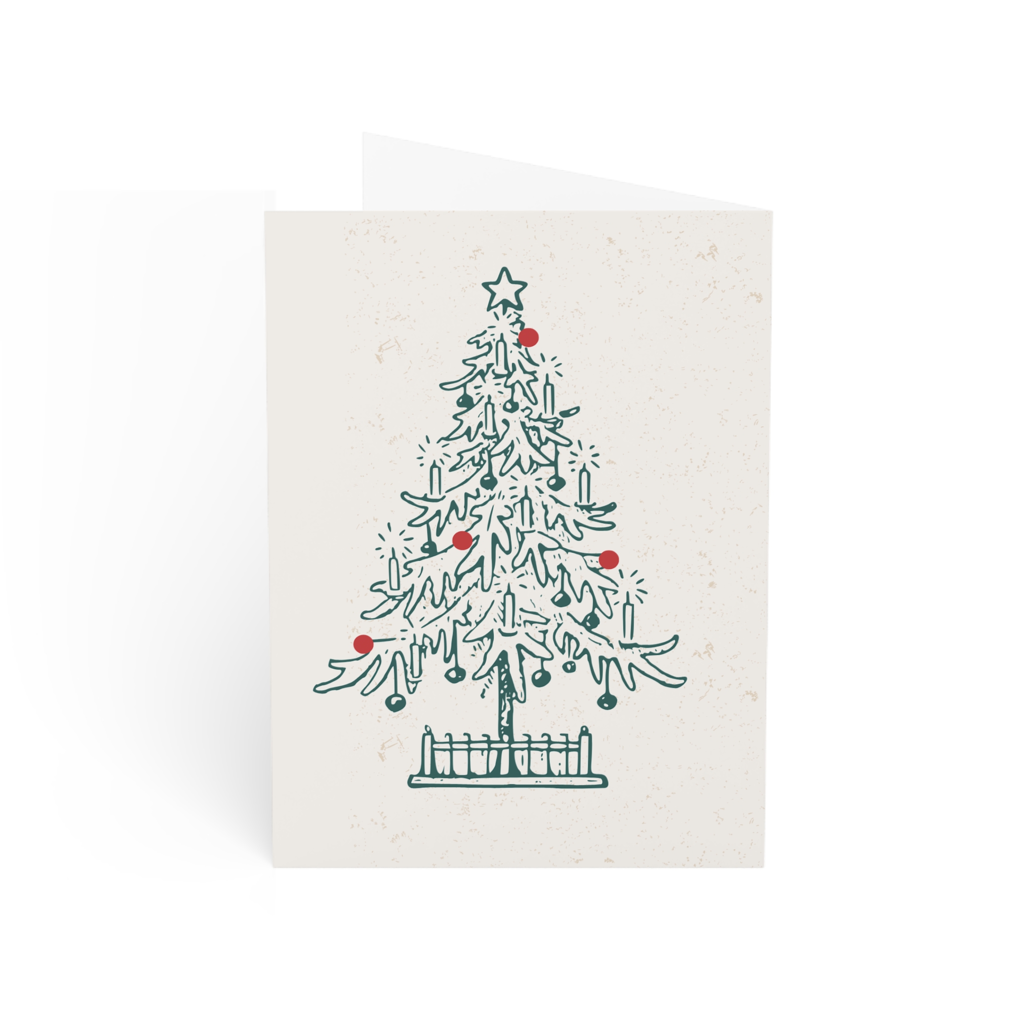 Merry Christmas Green Tree Greeting Card (1, 10, 30, and 50pcs)