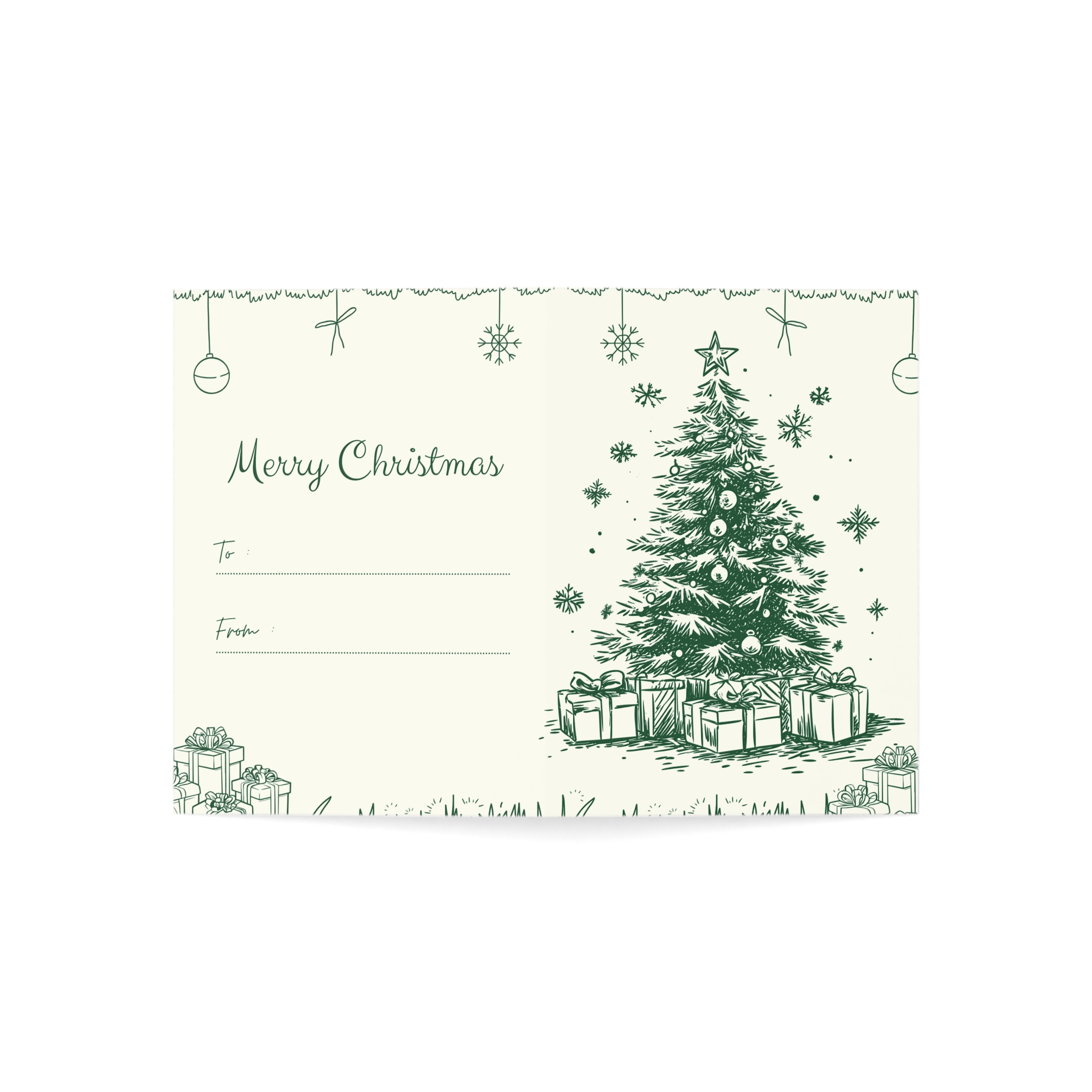 A personalized Christmas wish feels even more special when it arrives on a beautifully customized greeting card. Featuring a festive green tree design, this Merry Christmas card brings warmth, joy, and a touch of holiday magic to every message.