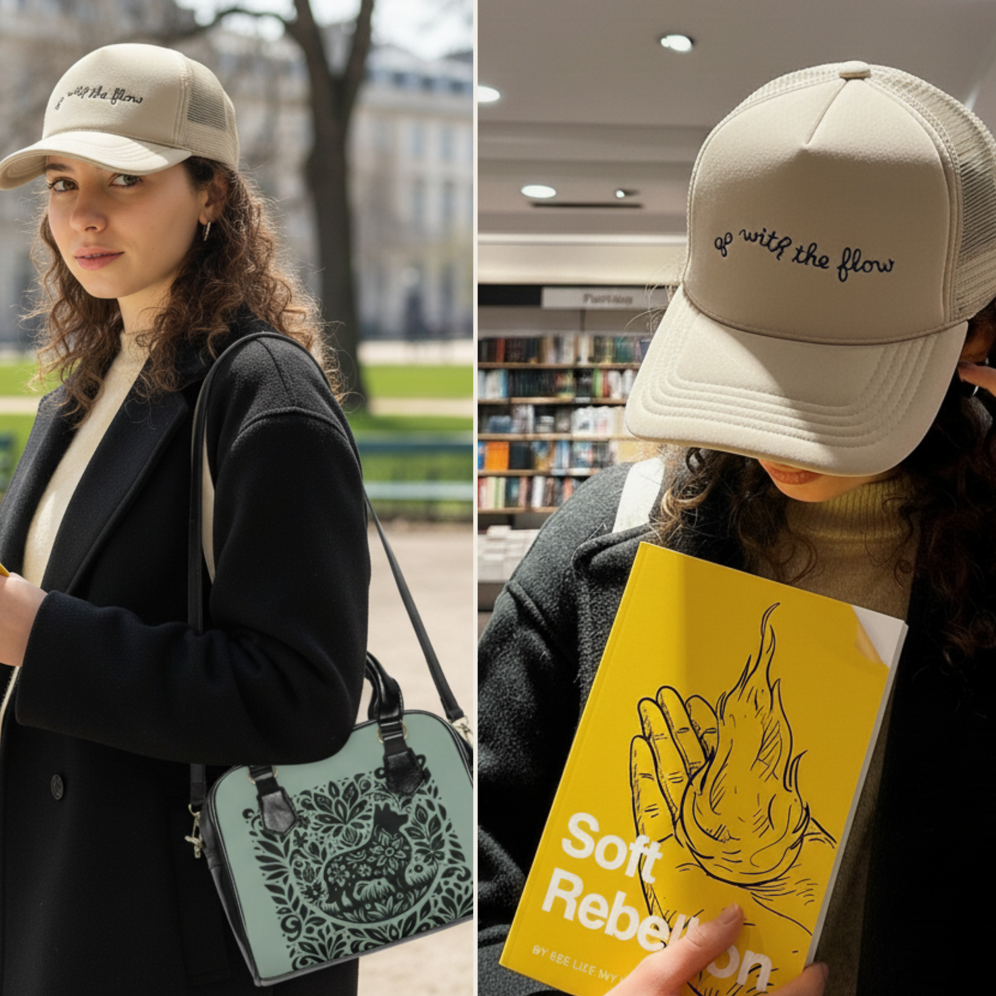 “Go With The Flow” Cap: A relaxed, flow-inspired cap with a gentle reminder to adapt, stay present, and trust your path.