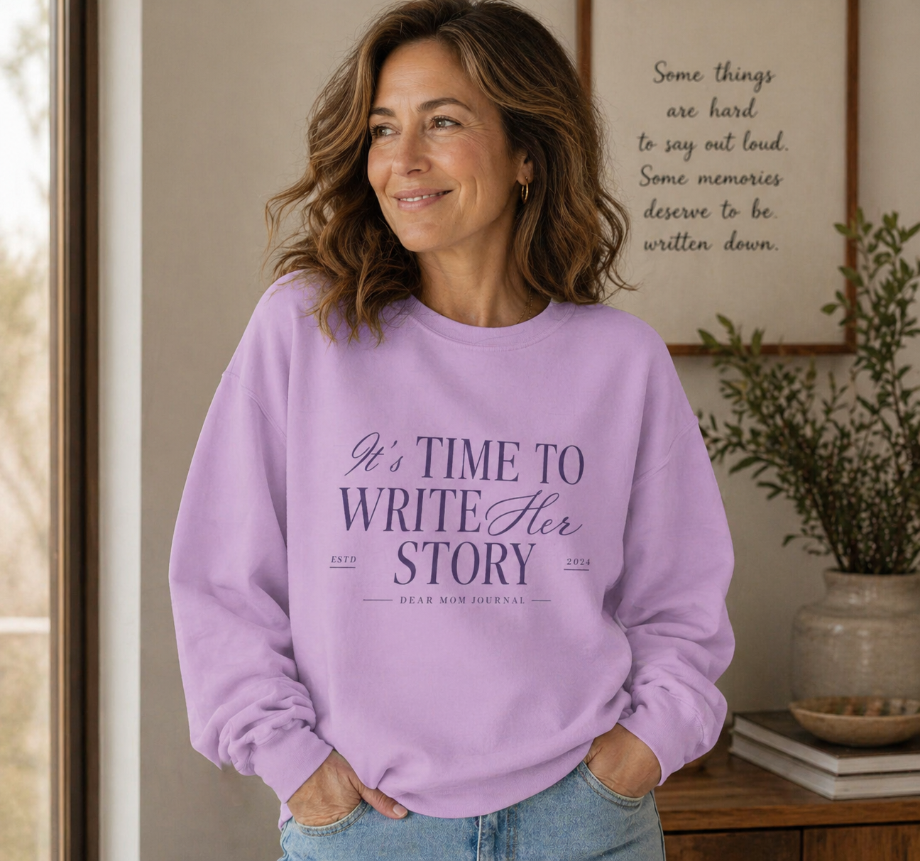 Time to Write Her Story Sweatshirt – Dear Mom Journal Edition