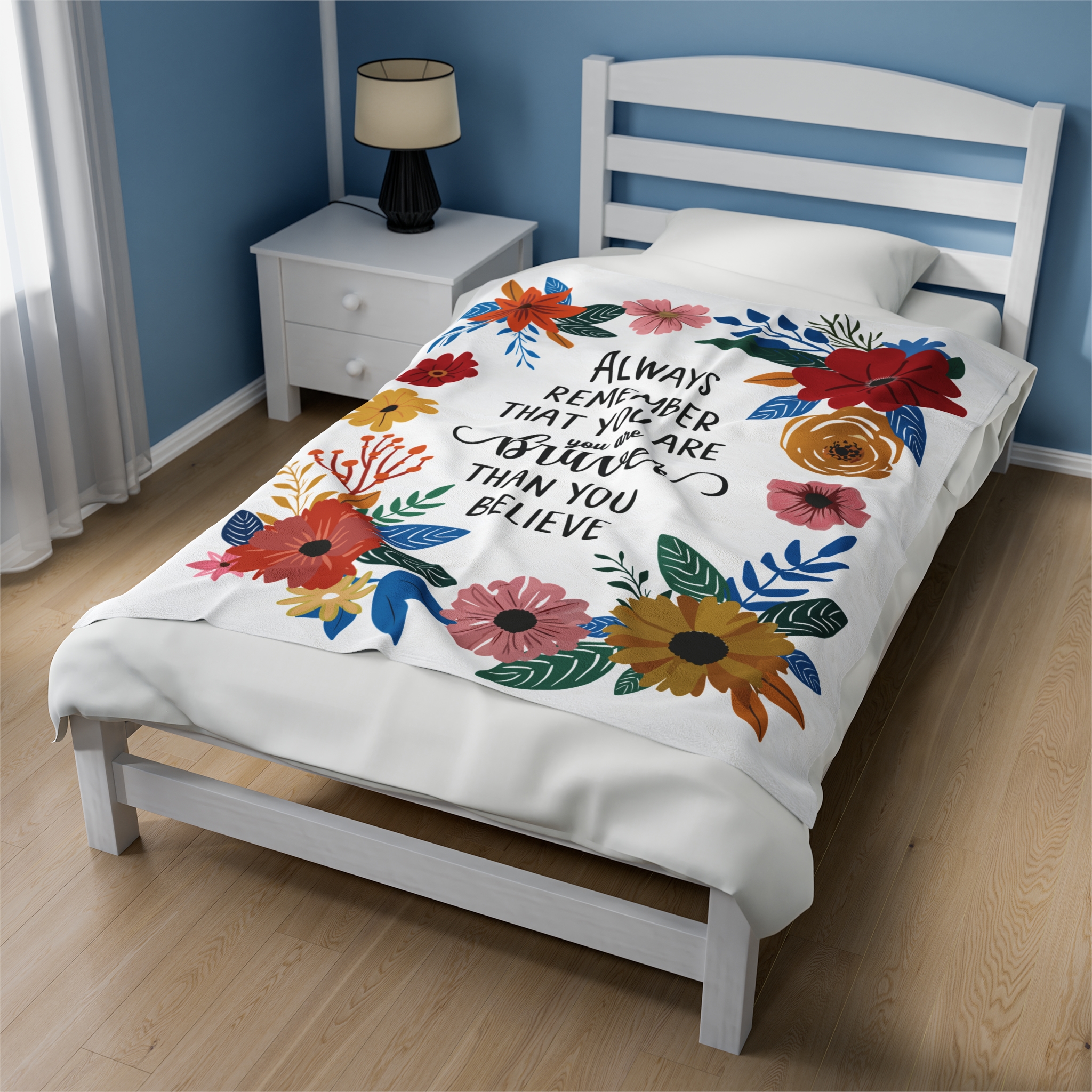 Create a cozy and warm atmosphere at home with this plush velveteen blanket. It is soft to touch and perfect for any home. Customize with a one-sided print to add your personal touch or create a gift for your friends and family. Available in three sizes: 30×40″, 50×60″, 60×80″.
