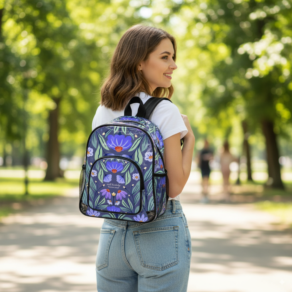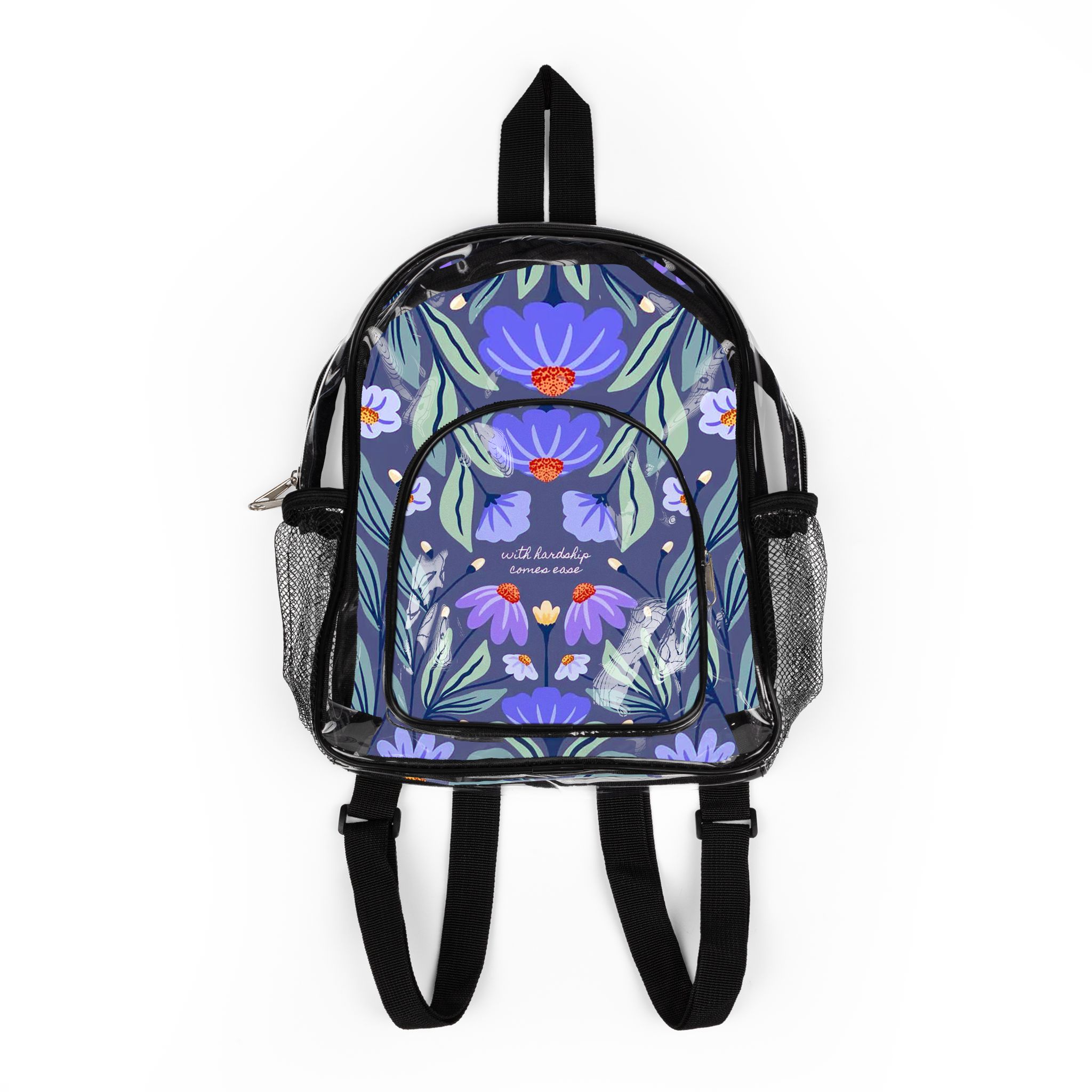 This clear PVC backpack blends practicality with purpose. With its sturdy straps and roomy interior, it’s perfect for concerts, travel, and everyday use. Stadium- and event-compliant, it keeps your essentials secure while inspiring resilience and hope with every step.