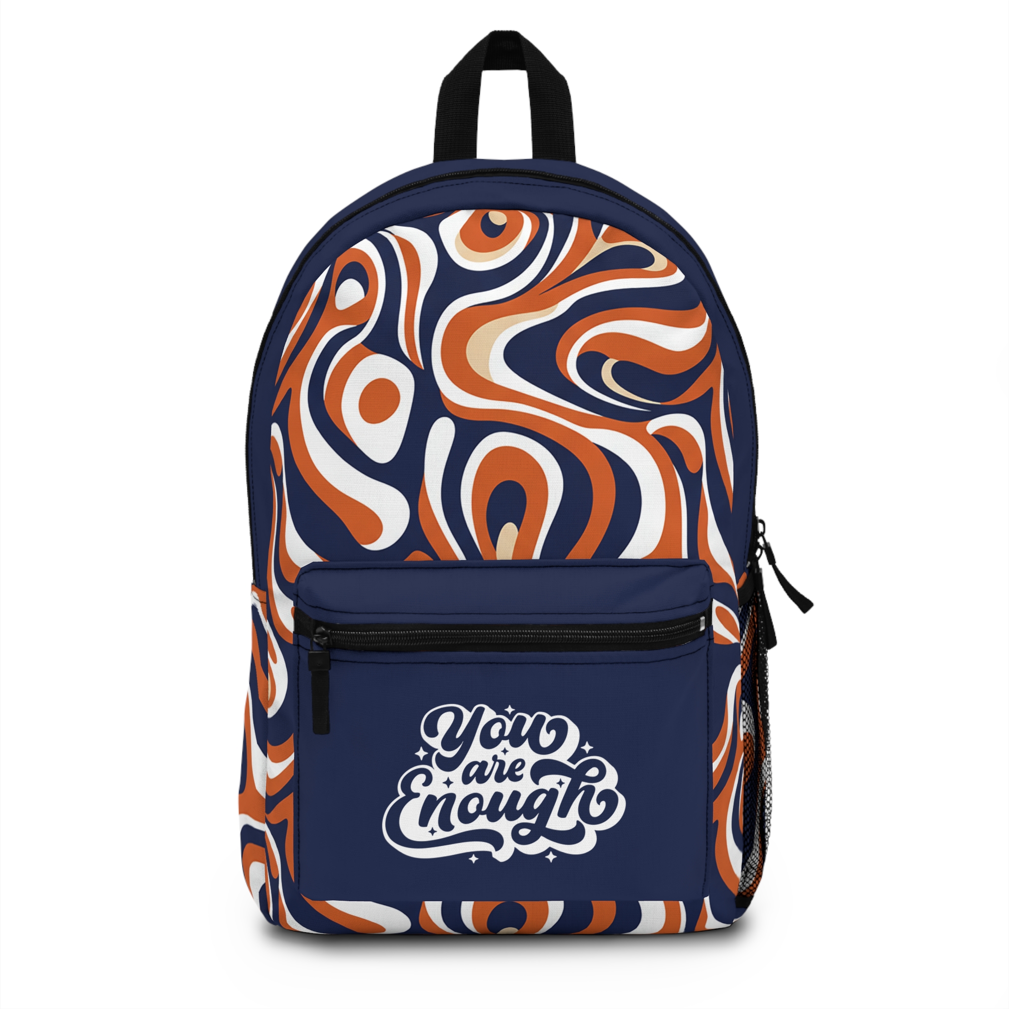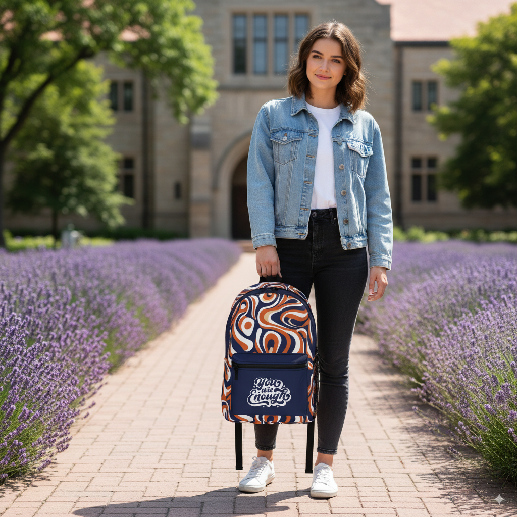 This durable spun polyester backpack is light yet strong, with enough room for everything you need. At just 1.3 lbs, it’s ready to hold your essentials—books, snacks, gadgets—while reminding you to move through the world with confidence and self-compassion. Stow it, grab it, toss it onto the seat next to you—this backpack can take it, and so can you.